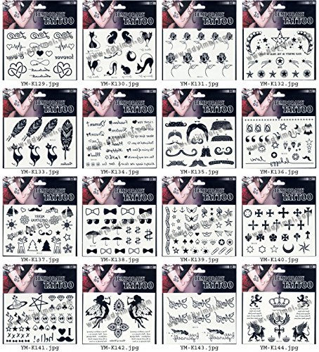 Wonbeauty 16pcs Fake and real temp tattoo stickers in a package,it including hearts with forever,cats,feathers,English...