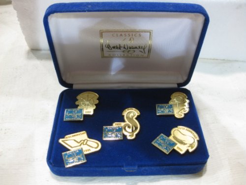 This is a new, still in its original blue veleteen case, Walt Disney Classic Collections 1997 Limited Edition Pin Set. This 5 pin set contains pins representing the years 1992-1996. Each pin has the emblem for that particular year that was used on the bottom of the WDCC sculptures produced during each year. These pins were a limited edition of 30,000. This set has never been used nor displayedFeature