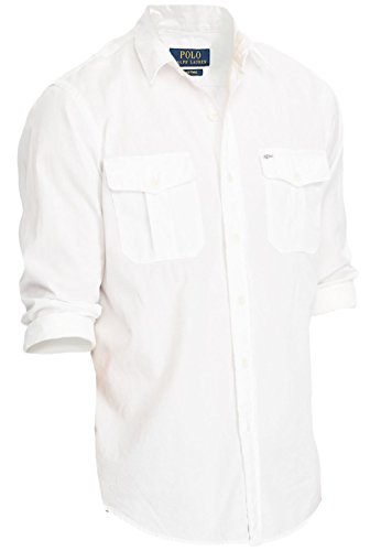 Polo Ralph Lauren Men's Standard Fit Beach Twill Utility Long Sleeve Button Down Sport Shirt (Large, White)