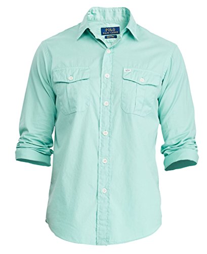 Polo Ralph Lauren Men's Standard Fit Beach Twill Utility Long Sleeve Button Down Sport Shirt (X-Small, Offshore Green)