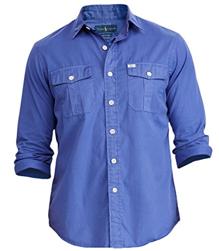 Polo Ralph Lauren Men's Standard Fit Beach Twill Utility Long Sleeve Button Down Sport Shirt (XX-Large, Spinnaker Blue)