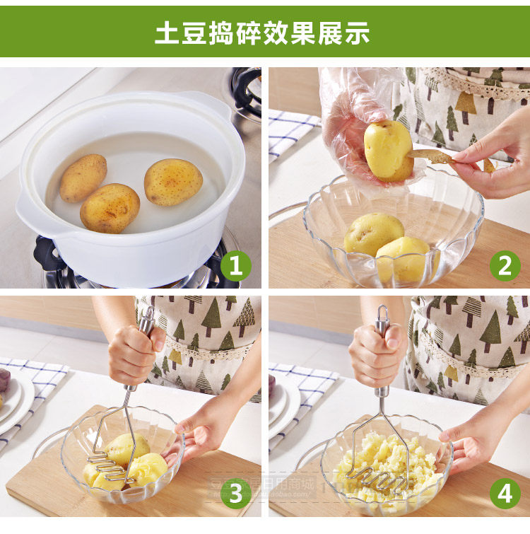 Thickened stainless steel, potatoes, sweet potatoes, fruits, etc. are applicable, washed after hanging, you can potatoes, tomatoes, pumpkin pressure evenly and delicate can make your favorite salad