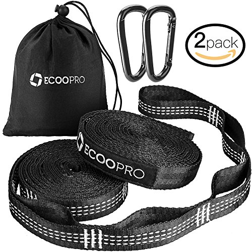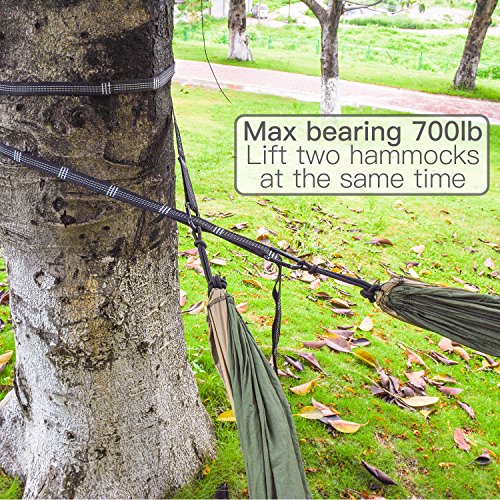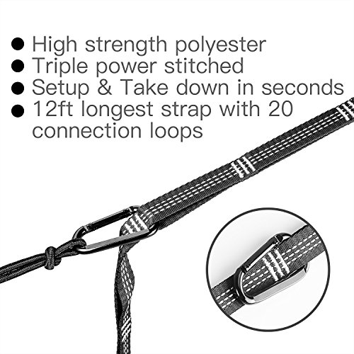【HAMMOCK STRAPS SET】At 12 feet long (24 Ft Combined) with 20 Attachment Loops (40 Combined) per strap, 1 inch wide(tree-friendly). 350+ Lbs per strap (700+ Lbs Total). Ultralight & compact, 17.6 OZ with drawstring bag, great for camping, hiking, backpacking, or cottage living. Set of 2 hammock hanging straps with 2 sturdy locking carabiners, longer & stronger than mallome atlas straps.