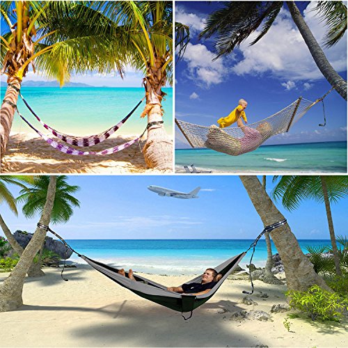 【ADJUSTABLE & EASY TO SET UP】Setup & release FEEMIC hammock tree straps more faster than ever, thanks to the 40 loop anchor points (20 per strap). No complicated knots to learn, you just wrap them around anything that is strong enough to hold up your hammock, like trees, posts, big rocks, beams, cars etc. Hammock straps suspension system makes it easy to adjust the height of your hammock fast.