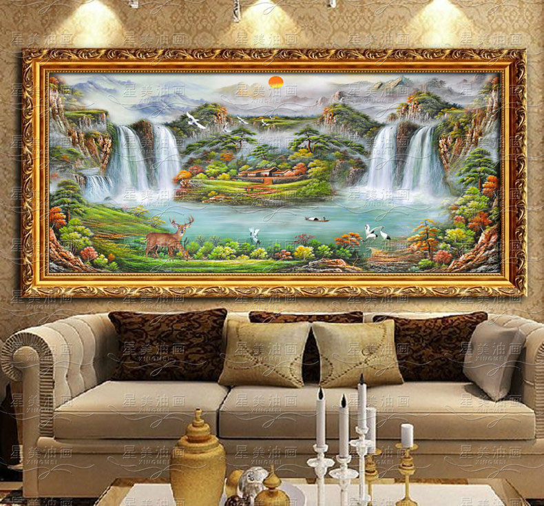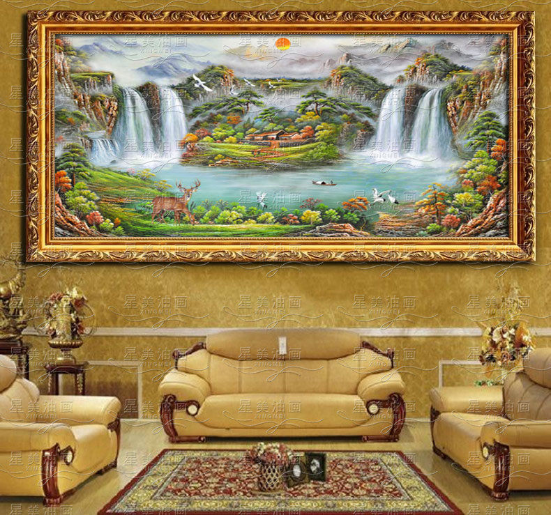 将此风水画悬挂于厅堂,立添主人财气,令人一见即生舒适安逸之感,获人兴财旺之效。