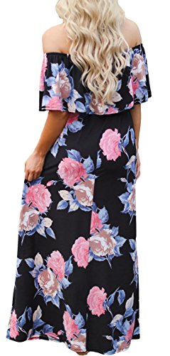 Cfanny Women's Off Shoulder Ruffle Floral Print Casual Maxi Long Boho DressFeature