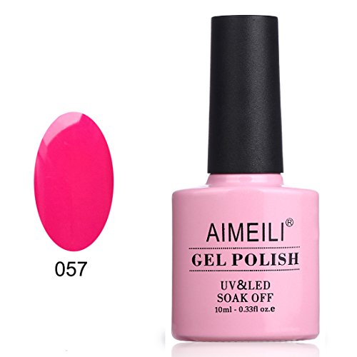 -. Binding : Misc. -. Brand : AIMEILI -. EAN : 0701851249425 -. Feature : 14-day high-gloss wear , On like polish, Wears like Gel, Off in minutes / Mirror shine finish. No Nicks, Chips or Smudges / Requires drying under UV or LED Lamp / Please note: Due to the lighting and screen setting, color may vary slightly from the picture. -. IsAdultProduct : 0 -. Label : AIMEILI -. Manufacturer : AIMEILI -. MPN : 057 -. PackageQuantity : 1 -. PartNumber : 057 -. ProductGroup : Beauty -. ProductTypeName : BEAUTY -. Publisher : AIMEILI -. Studio : AIMEILI -. Title : AIMEILI Soak Off UV LED Gel Nail Polish - Neon Very Berry (057) 10ml -. UPC : 701851249425