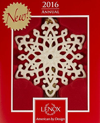Dated for 2016, this annual ornament will create a flurry of excitement for Lenox collectors. Crafted of Lenox porcelain, this ornament includes a lustrous gold rope with tassel for hanging and comes beautifully packaged in an iconic seasonal red box to make a perfect gift.Feature
