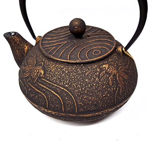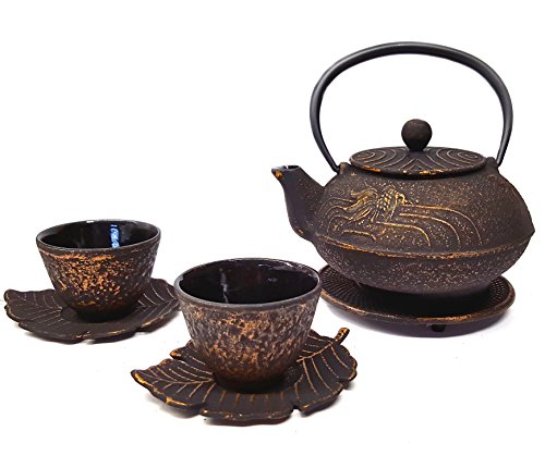 -. Feature : Happy Sales Goldfish Cast Iron Tea Set Includes 1 Teapot, 1 Trivet, 2 Cups, 2 Saucers, & 1 Stainless Steel Strainer. / 20 Ounce Capacity Teapot. / Inside of Teapot and Cups Lined with Porcelain Enamel / Brand New in Gift Box / The teapot is designed for steeping tea only, NOT to boil water.
