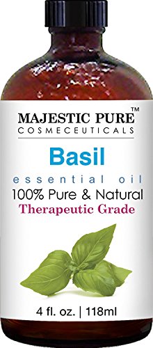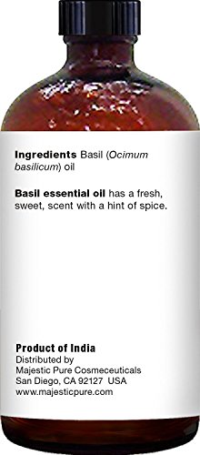 Majestic Pure Basil Oil, Therapeutic Grade, Pure and Natural Basil Essential Oil, 4 fl. oz.