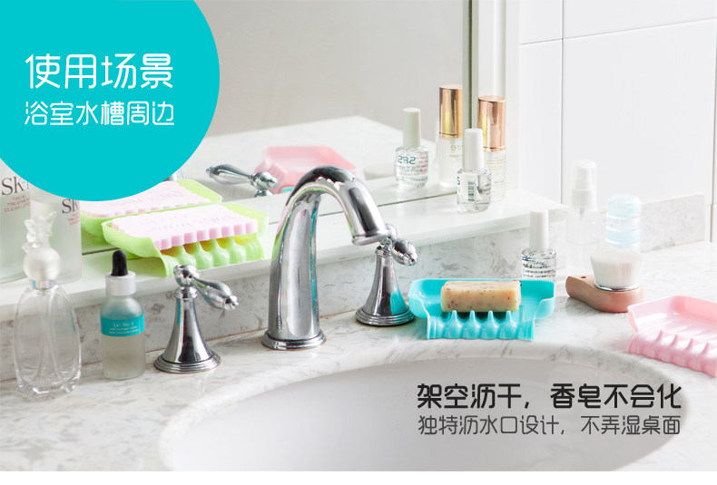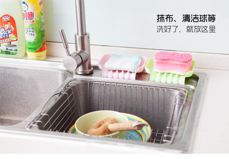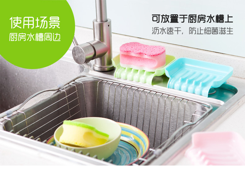炫彩创意吸盘浴室可沥水肥皂盒香皂盒 简约厨房水槽海绵杂物收纳