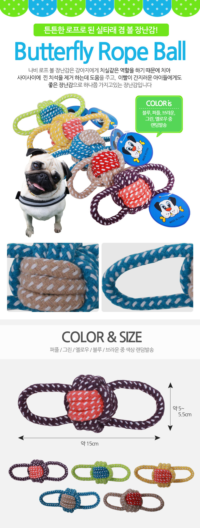 Butterfly Rope Ball Color Random 1 Dog Toy Toy Doll For dogs