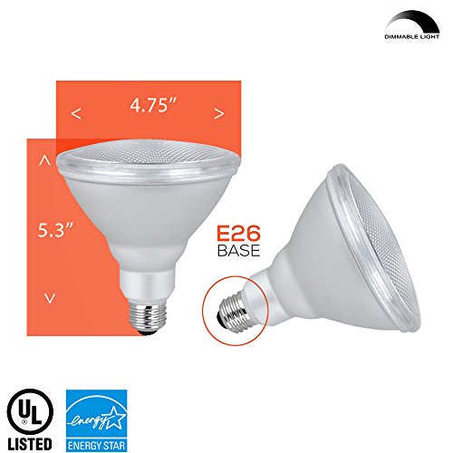 - ✔ KEY FEATURES - Dimmable, outdoor waterproof, energy efficient, instant on, 3000K soft white light appearance, 1400 lumens, 38° degree beam angle, Energy Star Listed, UL Listed, RoHS Certified, E26 screw in base, uses 18 watts of energy and 120 volt.