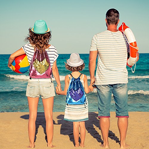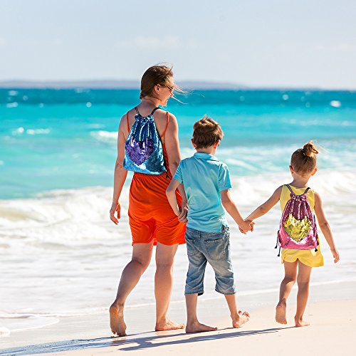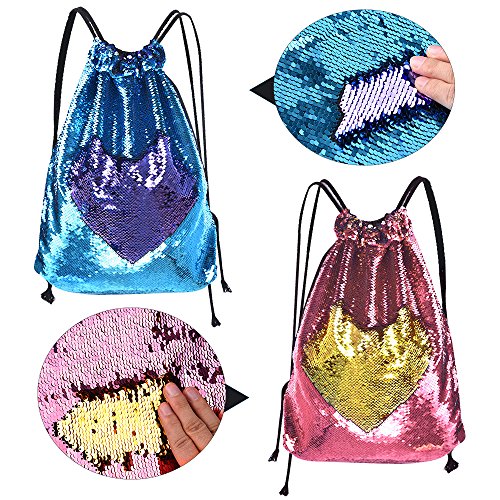 Product Description Super beautiful magic reversible sequin mermaid drawstring backpack, fashion and shining design, an ideal birthday/holiday gift for your kids or friends! Specifications: Material: polyester fabric and sequin. Size and weight: 45*35cm/17.7"*13.8" (L*W), 180g. Color: as the picture shown, pink and gold, blue and purple. Inside: with additional internal pocket to put small items. Design: adjustable string strap suitable for both kids and adult. Package includes: 2 * sequin mermaid backpack bag (pink and gold, blue and purple) 0