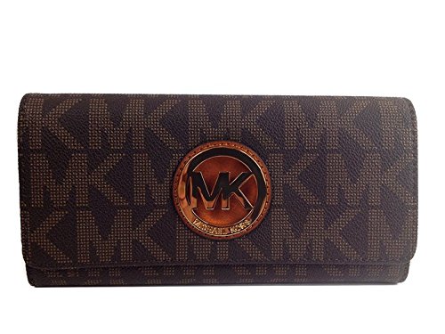 MICHAEL KORS SIGNATURE PVC FULTON FLAP WALLET IN BROWN