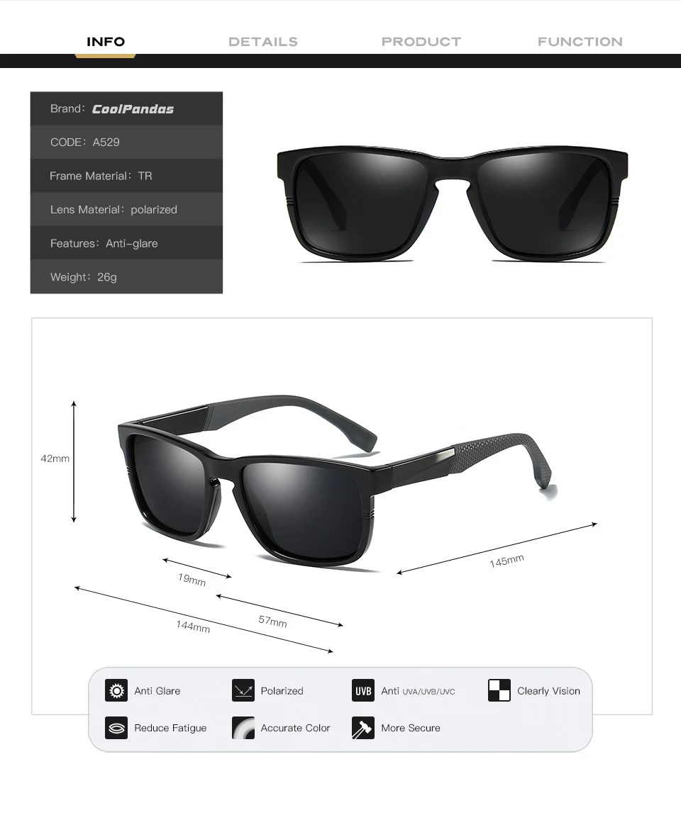 Package:Glasses,Case,Bag,Clean cloth,Polarizied test