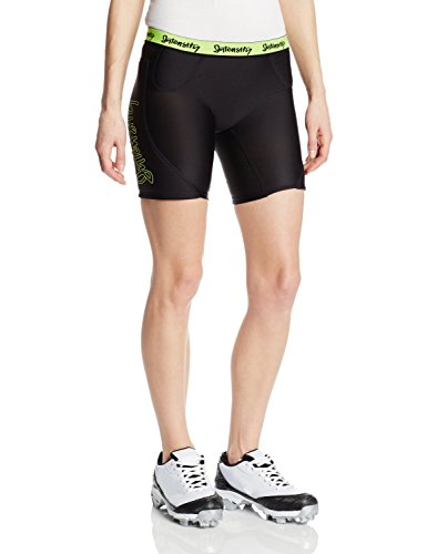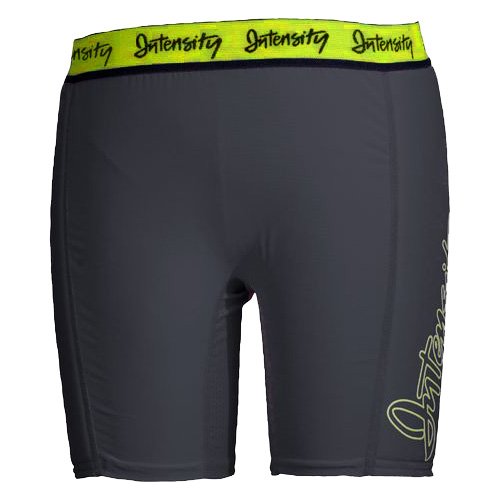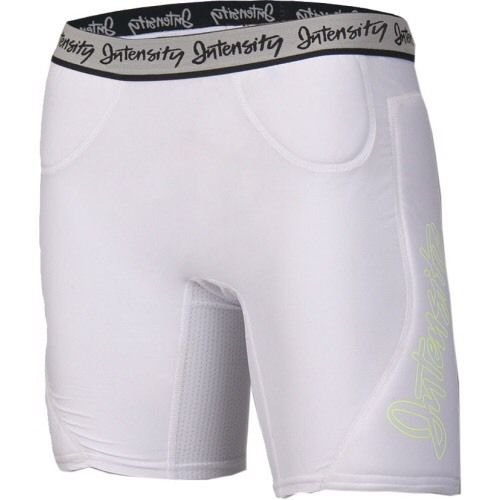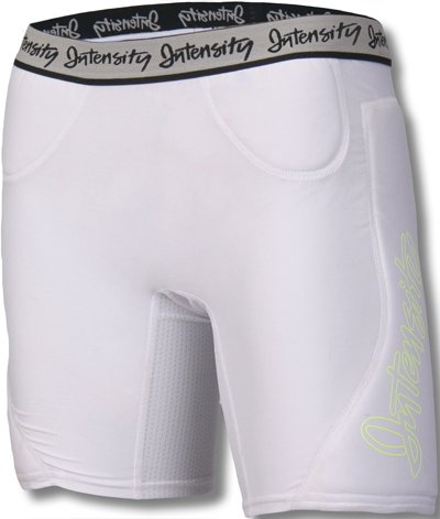 Studio : Intensity Publisher : Intensity Binding : Apparel Product Description Women's Low Rise Compression Slider is made from 84% polyester 16% spandex for ultimate performance. Solids with bright contrast colors says she is stylish and fun. Flatlock seams to prevent chafing and provide optimum comfort, 7" inseam, hip, thigh, pelvic padding for added protection. Mesh thigh and crotch gusset provide ventilation for improved circulation and hygiene. 1 1/4" plush elastic waistband adds comfort. 0