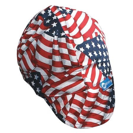 Welding Cap, Color Red/White/Blue, 7-3/8