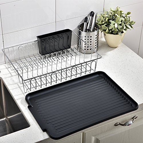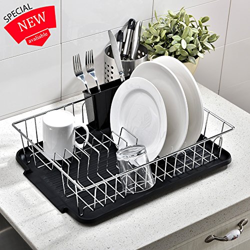 POPILION Superior Quality Kitchen Sink Side Antimicrobial Draining Dish Drying Rack,3-Piece Black