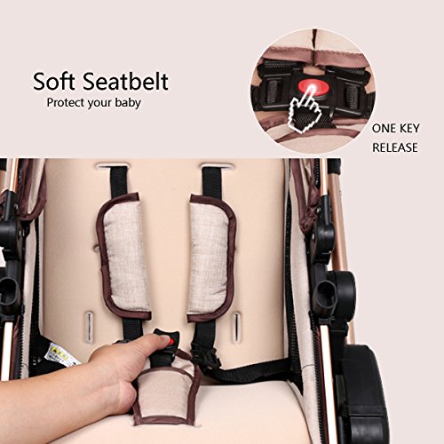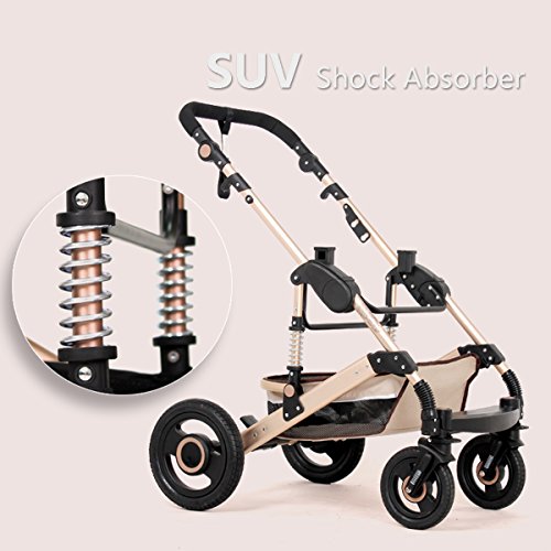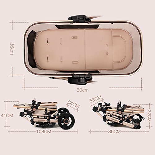 Studio : Aissimio Publisher : Aissimio Binding : Misc. Product Description DESCRIPTION Design adds safety. Super natural rubber explosion proof wheels; Pedal brake, more safer. Easy to fold. Solid steel frame easy to fold(one key to collect). Suitable For 0-3 years old Babies FEATURE Solid aluminum alloy frame easy to fold Heights more adjustably swivel push seized Reciprocal brakes,Lightweight design 4-point back backrest adjustment swivel wheel Give your baby a comfortable ride! SPECIFICATION Color: Gold Material: Aluminum Alloy Item Weight: 13KG Max Bearing: 25KG Folded up with wheels: 640x410x1080mm Overall hight of the buggy to hood point: 1090mm Internal basket size: 800x360mm Package Weight: 14kg Package Size: 530x290x860mm PACKAGE INCLUDED 1 x Baby Pushchair 1 x Summer Sleeping Mat 1 x Wrist Strap 1 x Mosquito Curtain 1 x Cotton Cushion 1 x Foot Strap 1 x Baby Bibs 1 x Cup Holder SUGGESTION: It is common that the new stroller smells,it will not have any side effects on babies.It can be cleaned with a wet towel or placed in a ventilated place for 3 to 4 days.