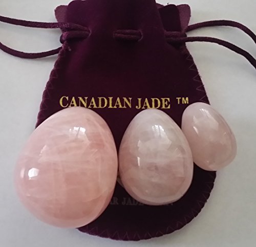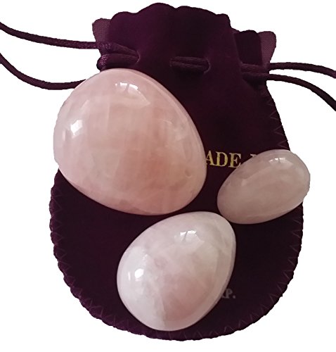 YONI EGGS SET OF 3 ROSE QUARTZ JADE EGGS, UNDRILLED, FULL RANGE 3 SIZES (L/M/S), FOR TRAINING TO GAIN BETTER BLADDER CONTROL AND INCONTINENCE TREATMENT