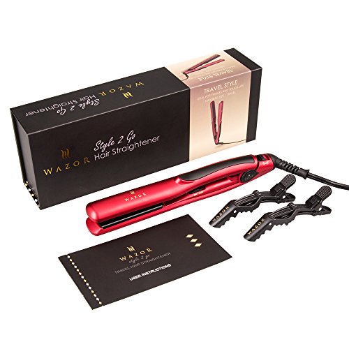 Wazor Professional Mini Hair Straightener Travel Size 3/4 Inch Flat Iron Dual Voltage For Worldwide Use.