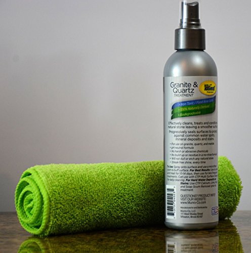 -. Feature : Cleans polishes and seals granite, quartz, marble, and all other natural stone surfaces / Contains ioSeal Protectants, protecting against stains, water spots, limescale buildup, UV rays and more / Polishes the stones surface with a no wax formula and won't buildup. Free full size microfiber towel / pH neutral, no harsh or abrasive chemicals, nontoxic, biodegradable / A simple effective and affordable "All-in-One" stone care kit in a bottle!
