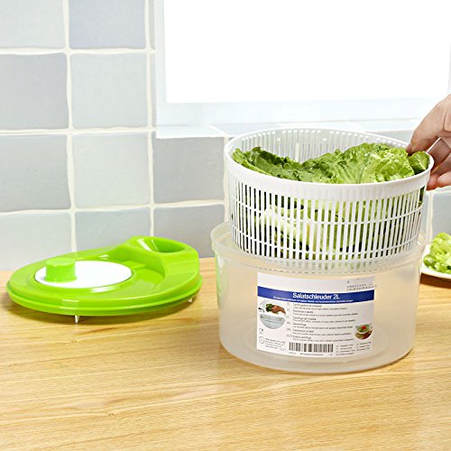 Polypropylene Salad Spinner quickly dries greens while combining all vegetables perfectly. 2-Quarts (2 Liters) capacity.