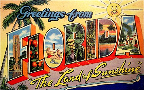 -. Title : Greetings From FLORIDA Sticker (vintage post card design)