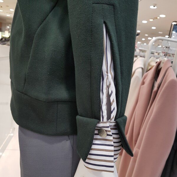 그린컬러에 세련프린트에 티셔츠네요깔끔하게 떨어지는 핏에~^^소매셔츠레이어드가 독특한 아이랍니다착용감 좋구요~ 사이즈 여유있네용