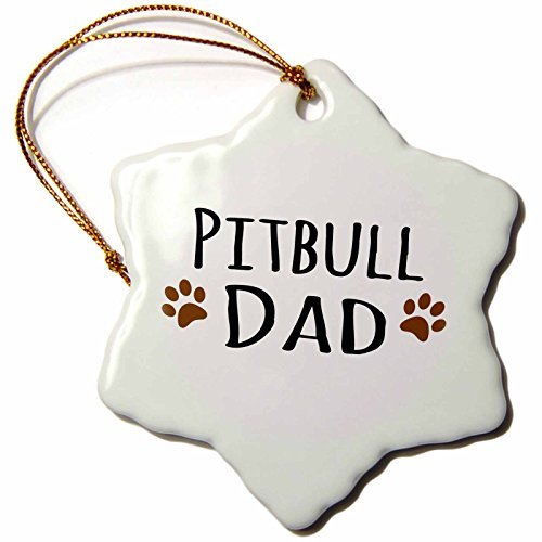 -. Title : Wild Bramble 3-Inch Porcelain Snowflake Decorative Hanging Ornament, "Pitbull Dog Dad-Doggie By Breed-Muddy Brown Paw P.R.Ints-Proud Pet Owner Love"