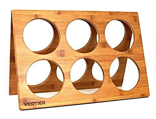 VERTIER Premium Bamboo Wine Rack - Fits Six Wine Bottles - High End Quality with 100% Natural Bamboo Wood Grain