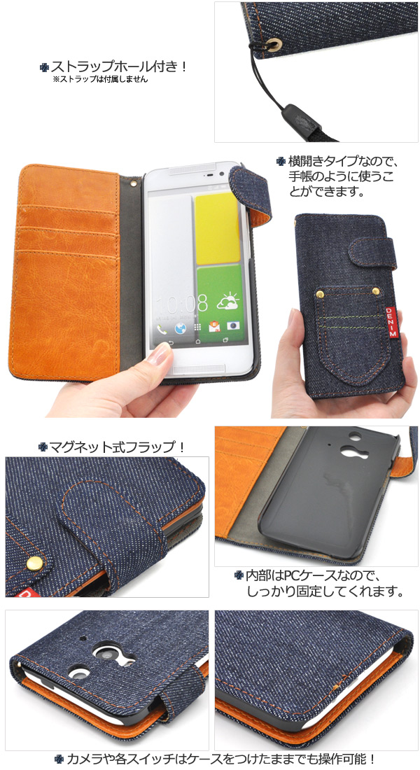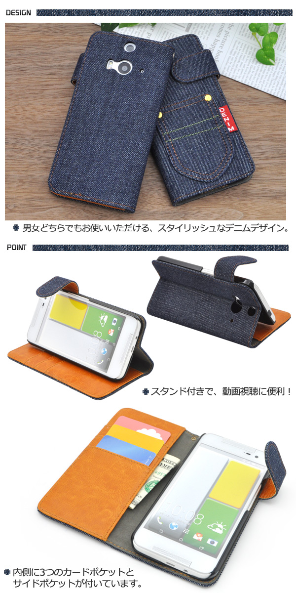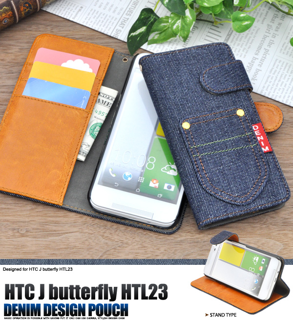 デニムデザインのHTC J butterfly HTL23用スタンドケースポーチ。