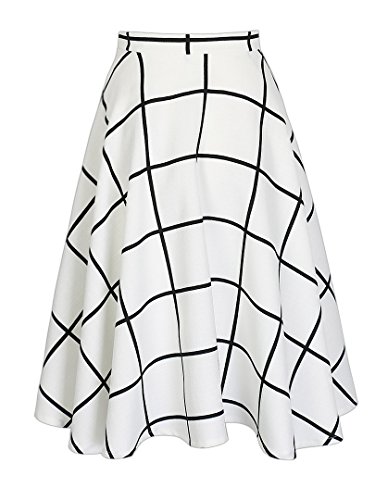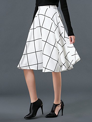 -. Title : Choies Women's White/Blue Plaid P.R.Int High Waist Skater Swing Midi Skirt
