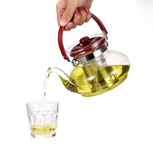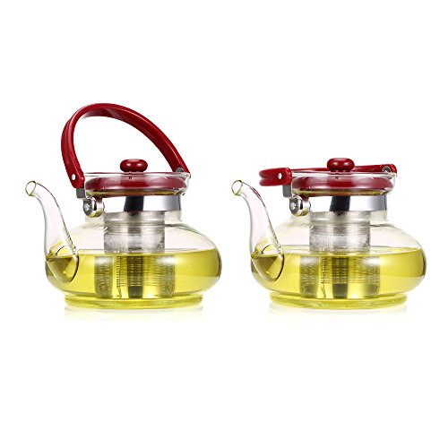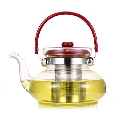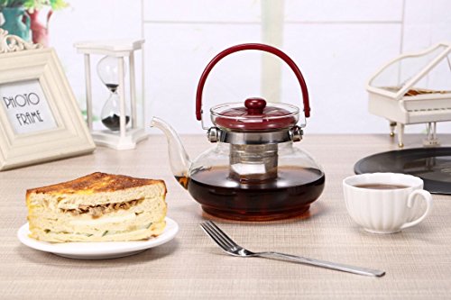 Product Dimensions: 7.5 x 5.9 x 4.7 Inches, Diameter: 5.9 Inches? Infuser Dimensions: 2.8 x2.2 x 2.2 Inches, Diameter: 2.2 Inches? This generously sized glass teapot is composed of Borosilicate glass which tends to be stronger and more heat resistant than conventional glassware, yet appears more delicate with an air of sophistication. MAKING GREAT TEA? Drop your desired amount of loose leaf tea into the infuser and gently pour boiled water through the infuser into the teapot. The tea will gain color and expand comfortably in the infuser giving you an elegant and high class tea experience. This teapot is a must for anyone that loves gourmet loose leaf tea!? MATERIALS AND HANDLING? The Torisoto is made from heatproof borosilicate glass which is the perfect material for handling hot liquids like boiling water as it is very similar to test tube glass. The Torisoto is dishwasher safe, but to avoid being knocked around or getting hit or damaged in the dishwasher, we recommend gently rinsing it out after use with some soapy water to keep it like new.? 0 |