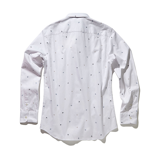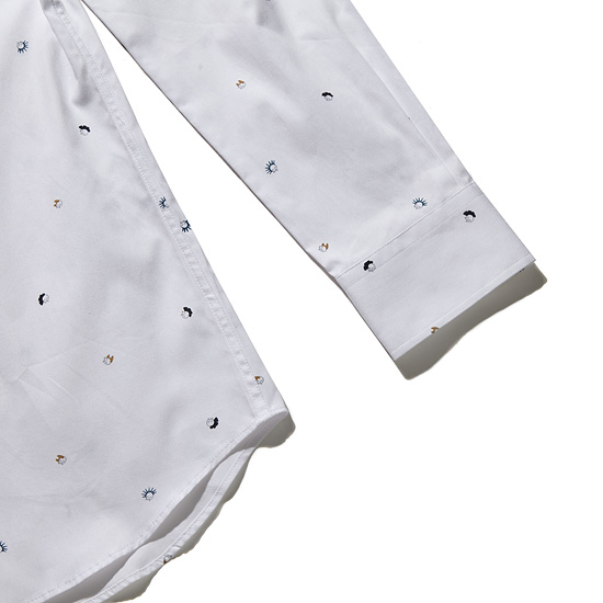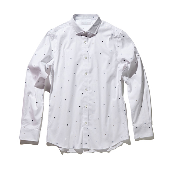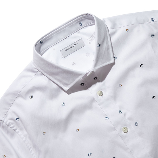 - 다양한 페이스 모티브의 올오버 패턴으로 유쾌한 남성 셔츠.