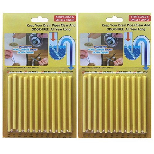 -. Title : Zooarts (Pack of 2 - 24pcs) Lemon Enzymatic Drain Sticks - Helps to Prevent Blockages Forming , Keeps Sewer Drains Clear And Odor Free , Detergent Stick