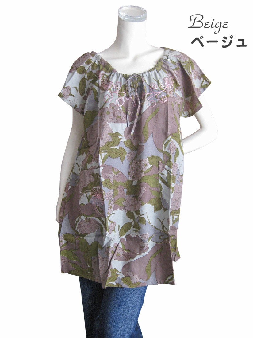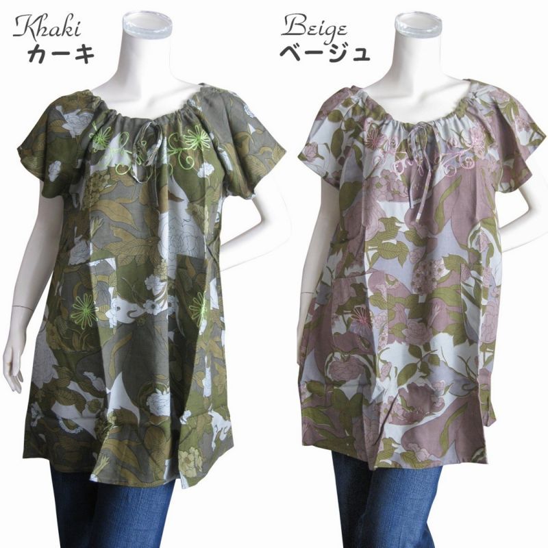 ワンピース チュニック ゆったりサイズ チュニックワンピ 花柄 エスニックプリント レーヨン