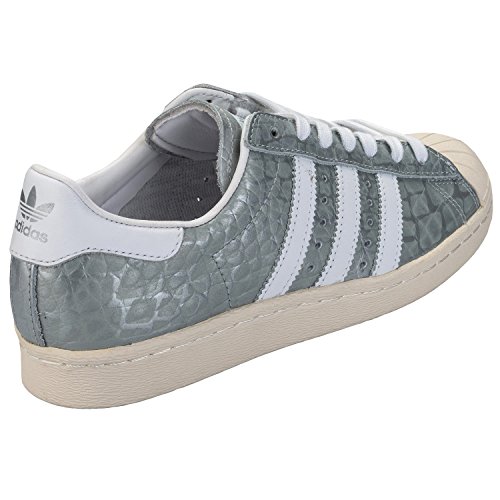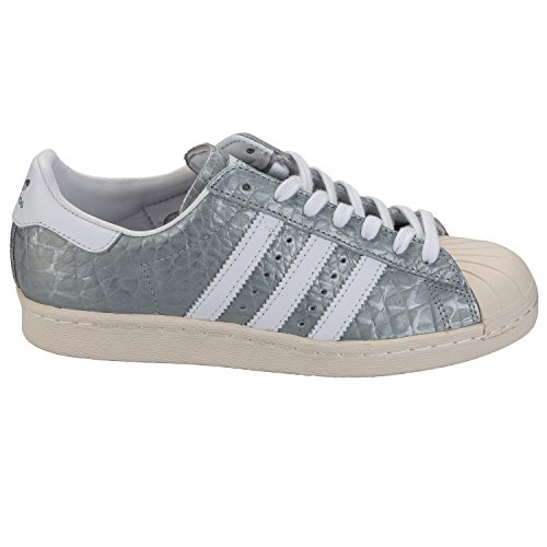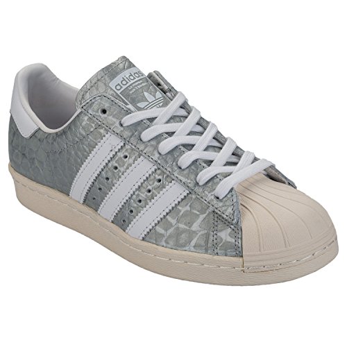 Studio : adidas Originals Publisher : adidas Originals Binding : Apparel Product Description Women's adidas Originals Superstar 80's Trainers in matte silver.- Full grain leather upper with reflective snakeskin foil print.- Lace up closure.- Padded collar.- Classic rubber shell toe.- Contrast leather 3-Stripes and heel patch.- Trefoil logo to heel and tongue.- Branding to heel and tongue.- Herringbone-pattern rubber outsole.- Leather and synthetic upper, Textile and synthetic lining, Synthetic sole.- Ref: S76415 0