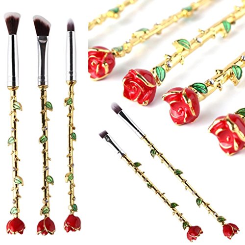 Beautiful eye & makeup brush tool kit set featuring gorgeous Beauty and the Beast rose themed handles