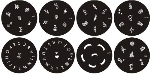- Feature : Make sure to peel off the BLUE tight protective plastic film on top of each plate before use / Pictures are shown in digital format. Actual plates are made in stainless steel and have high polish finish / Each plate contains 7 designs or more / We will ship the designs as shown on the Detail Pictures