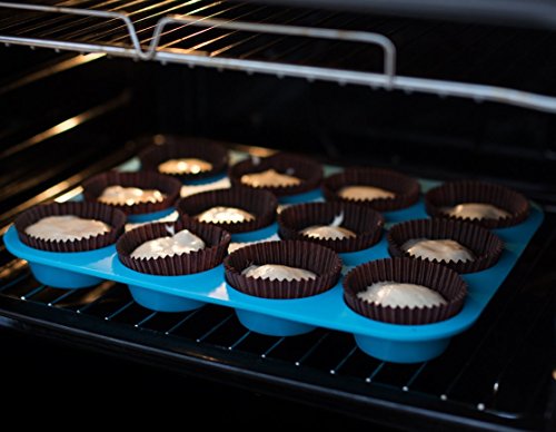 - Title : Large Muffin Pans - Top Non Stick Bakeware for Muffins, Cakes and Cupcakes - 12 Cups Texas Jumbo Silicone Mold / Baking Tray - Heat Resistant Tins up to 450°F- Easy to Clean - Blue