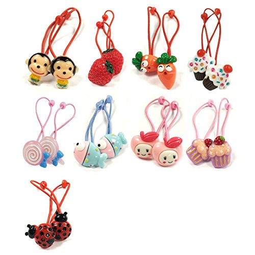 Bowbear Toddler Girls 18-Piece Fun Cartoon Ponytail Holders