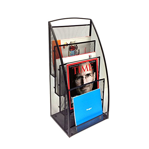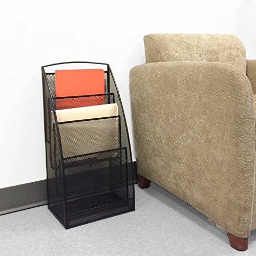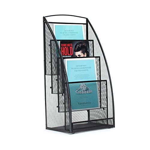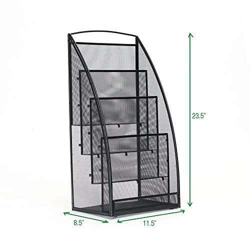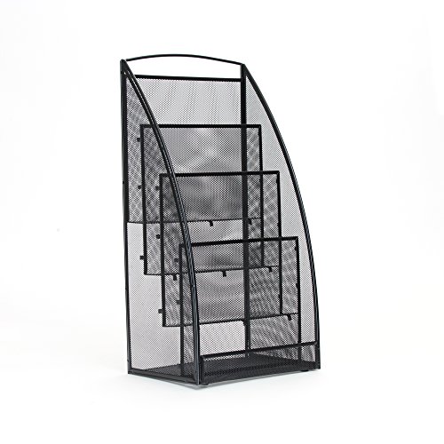 Mind Reader 4 Pocket Metal Mesh Newspaper and Magazine Rack, Black