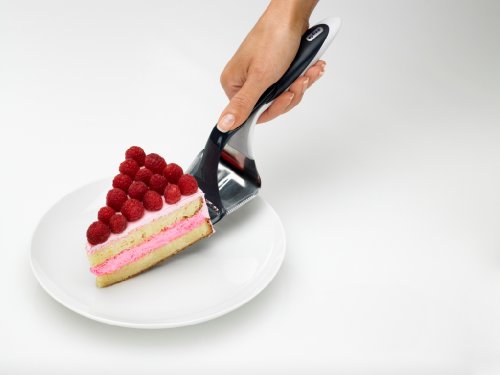 Zyliss' Cake Server has an efficient and easy to use design. The innovative blade slides forward to release cake for one-handed serving. It's serrated on both sides for right or left handed use. Cleaning the Cake Server is easy, because the blades come apart.
