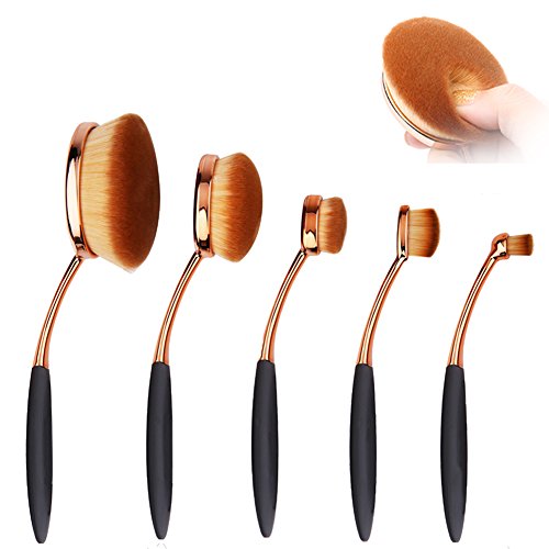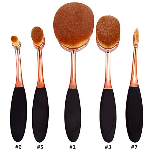 DSCbeauty Fashionable 5 Pcs Oval Makeup Brush Set Black Rose Gold Color Professional Foundation Contour Blush Concealer Eyebrow Eyeliner...
