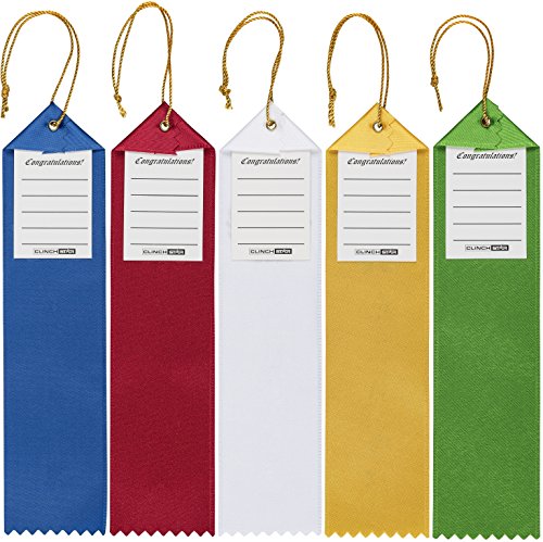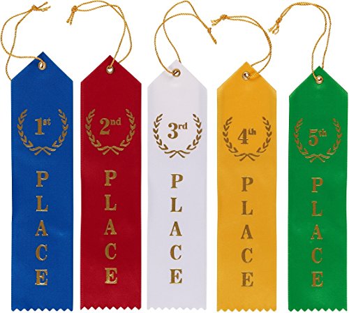 Upon receiving recognition a person feels accomplished and satisfied for what they have done. This gives and provides more confidence to continue and strive higher towards the next level or goal. These flat award ribbons are multi purposed and can be given out to those that meet great accomplishments for what they have done in all settings. Award ribbons can be presented to athletes or students by ceremonies and graduations, or at various sporting events. You can also award others on various holidays, parties, or for just winning a basic game. The award ribbons are manufactured with high quality materials made from satin and printed hot stamped gold letters of which provides a royal and impressive look to the awardee. Therefore the ribbons are also appropriate to be given out by ceremonies, marathons, races, competitions, and any additional sport games. Each ribbon place has the appropriate award colors with 1st blue, 2nd red, 3rd white, 4th yellow, and 5th green. 12 ribbons for each place with a total of 60 award ribbons. A gold twine string is attached to the top of each ribbon with an event card on the back of it, where you can compose on the card what you would like to write. The dimensions of each ribbon are 8x2 inches with the card 2x1.5 inches they can presented to boys, girls and adults.
