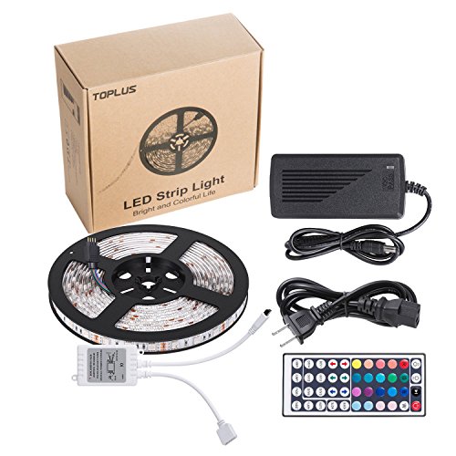 Toplus LED Strip Lights Kit Waterproof SMD 5050 RGB 16.4ft 5M 300LEDs Dimmable Led Strips Color Changing Flexible LED Rope Lights with 44Key Remote + 12V 5A Power Supply + IR Control Box