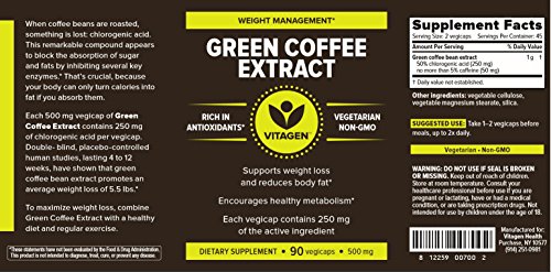 -. Title : Green Coffee Bean Extract, Natural Weight Loss Supplement, Vegetarian, Non-GMO, Antioxidants, 90 Vegetarian Caps, 500 mg, by Vitagen Health