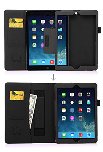 iPad Air Case FYY Premium PU Leather Case Smart Cover with Card Slots Pocket Elastic Hand Strap a